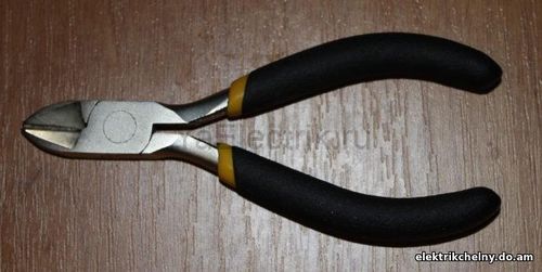 Для ровного перекусывания проводов используются бокорезы (или кусачки). Благодаря особой форме заточки режущей части они обеспечивают срез без сжатия концов провода. Опытные электрики зачастую обходятся только кусачками, вообще не используя пассатижи. На фото ниже приведены бокорезы – инструмент, используемый для электромонтажа и при ремонте бытовой техники.