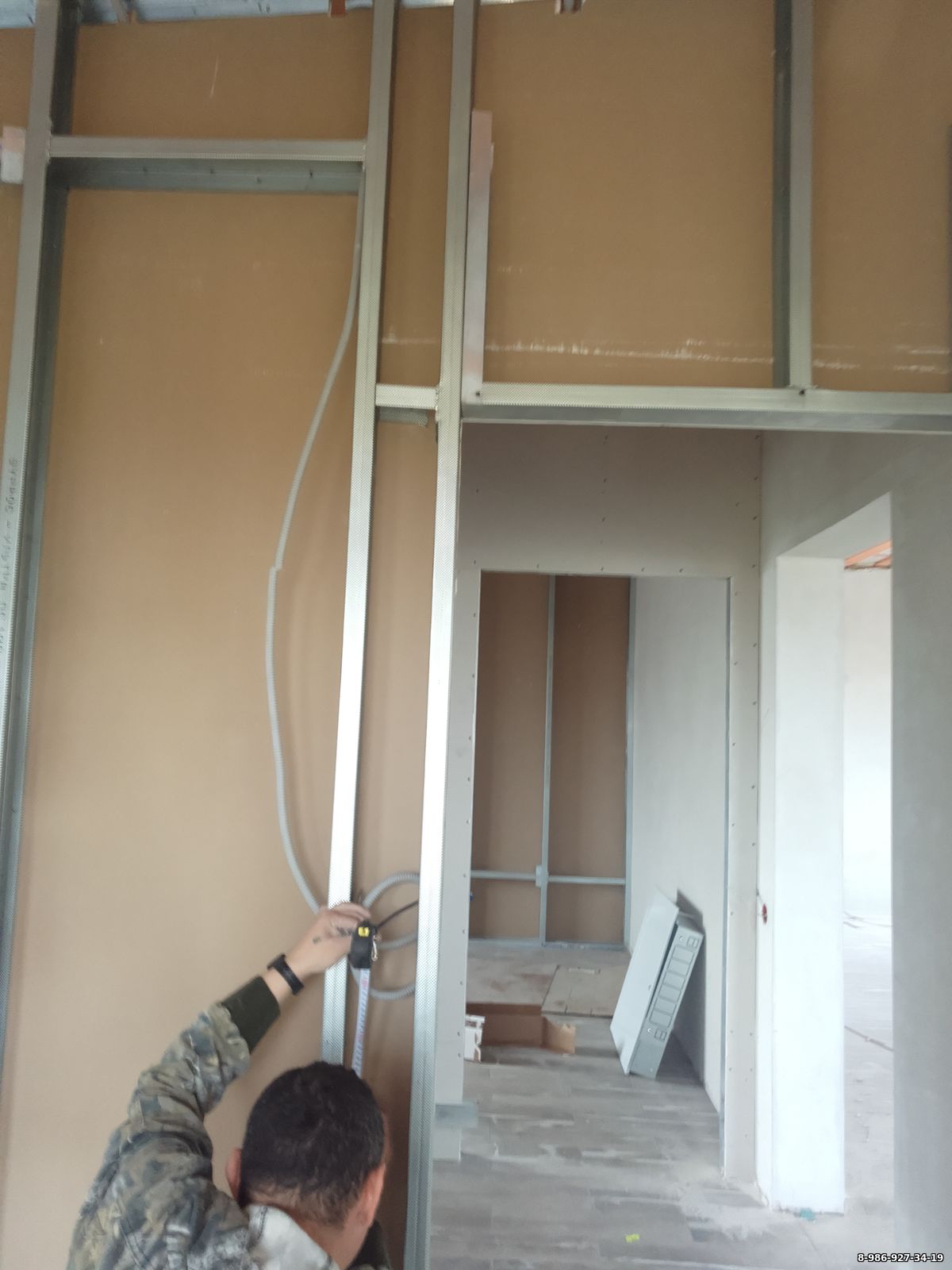 Монтаж кабеля выключателя в гипсокартоне